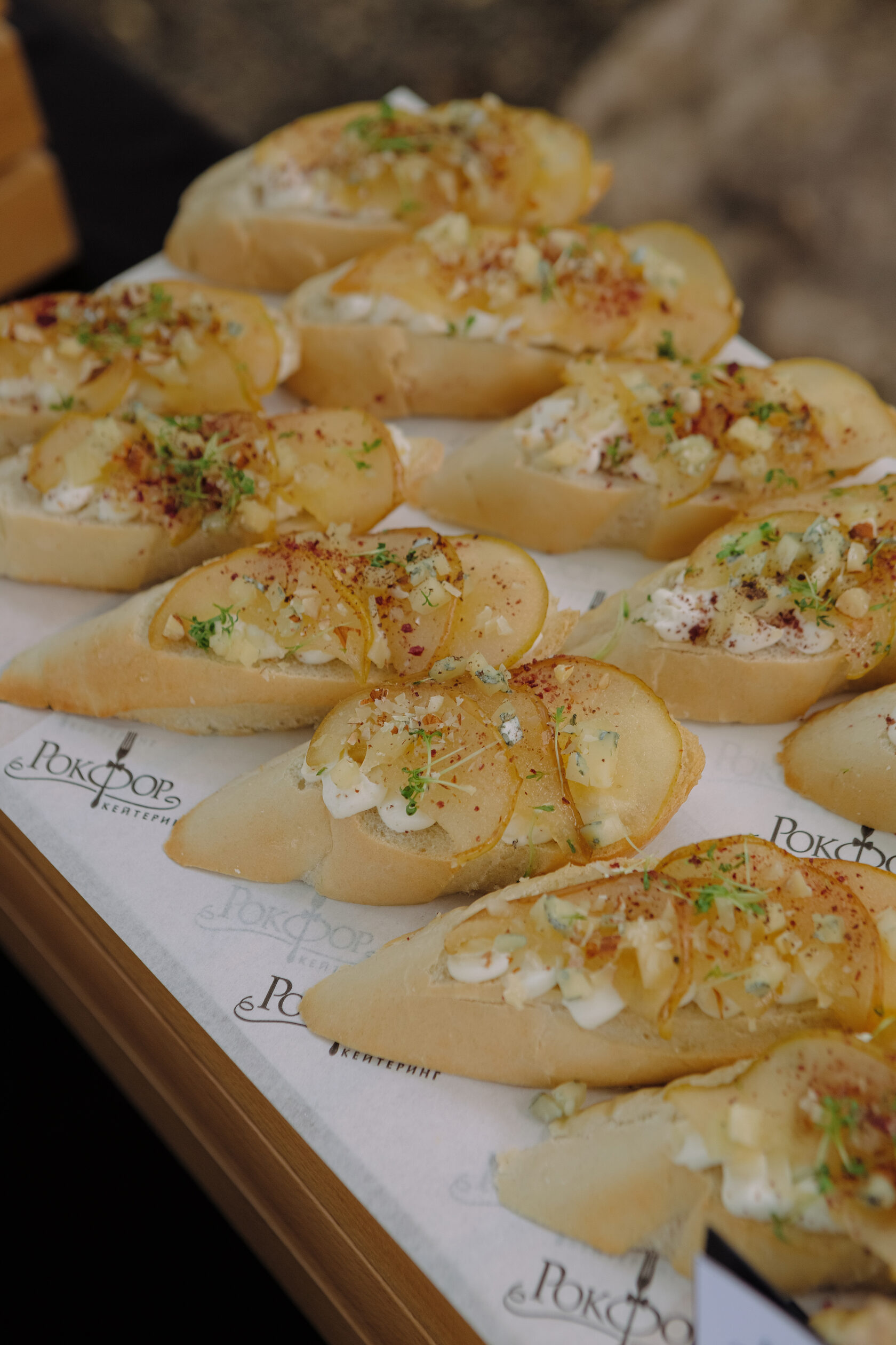 Брускетта с медовой грушей и сыром Блю