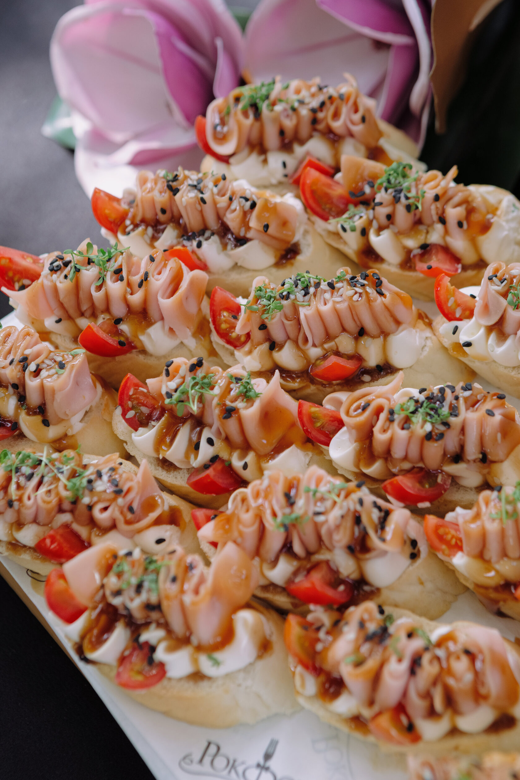Канапе с хамоном на фруктовой подушке